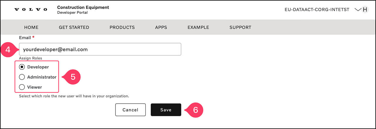 After logging in, you can invite additional members to the Developer Portal and assign them roles such as administrator, developer, or viewer based on your needs.