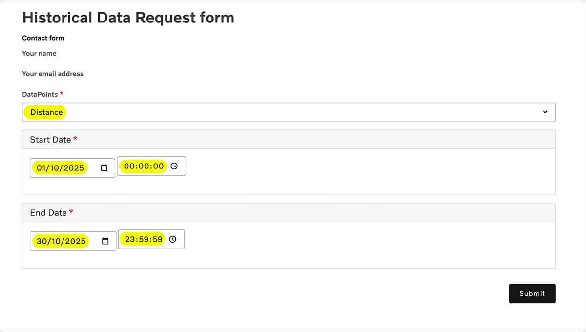 - Request Historical Data from the Developer portal by filling the Historical Data Request form with required details.