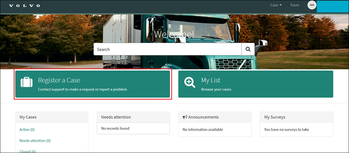 ⚠️ Important: If the user has a Volvo ID, then cases must be registered via the Customer Service Portal.